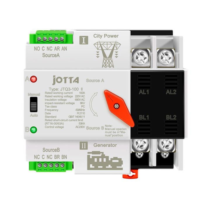 JOTTA W2R מחשב סוג אוטומטי העברת מתג 2P 100A 220V מסילת Din רכוב ATS אוטומטי ידני